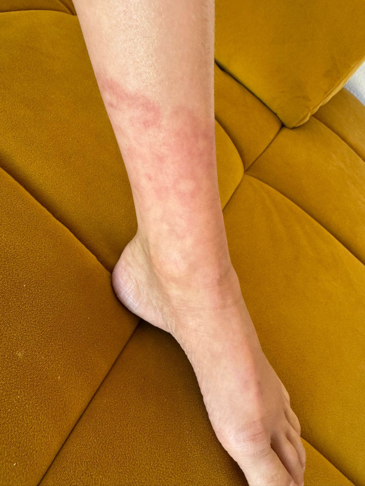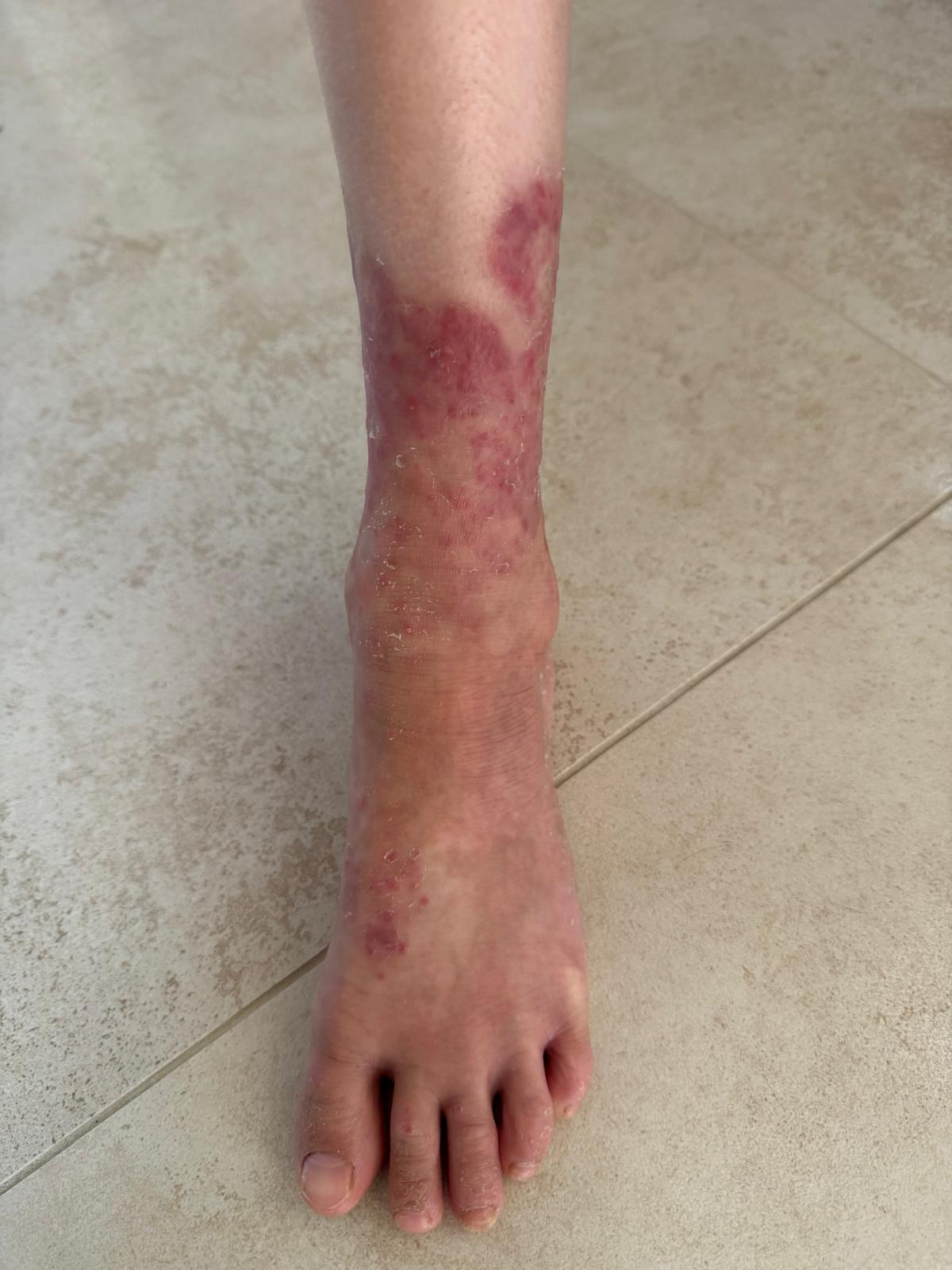 Po třech ošetřeních noha klidnější, znatelný ústup ichtyózy.